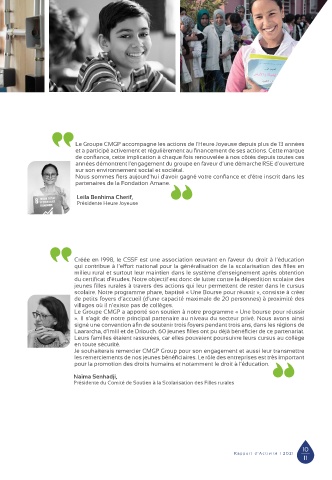 les valeurs, les qualités humaines et le professionnalisme des équipes de CMGP Group, Laararcha, d’Imlil et de Driouch. 60 jeunes filles ont pu déjà bénéficier de ce partenariat.